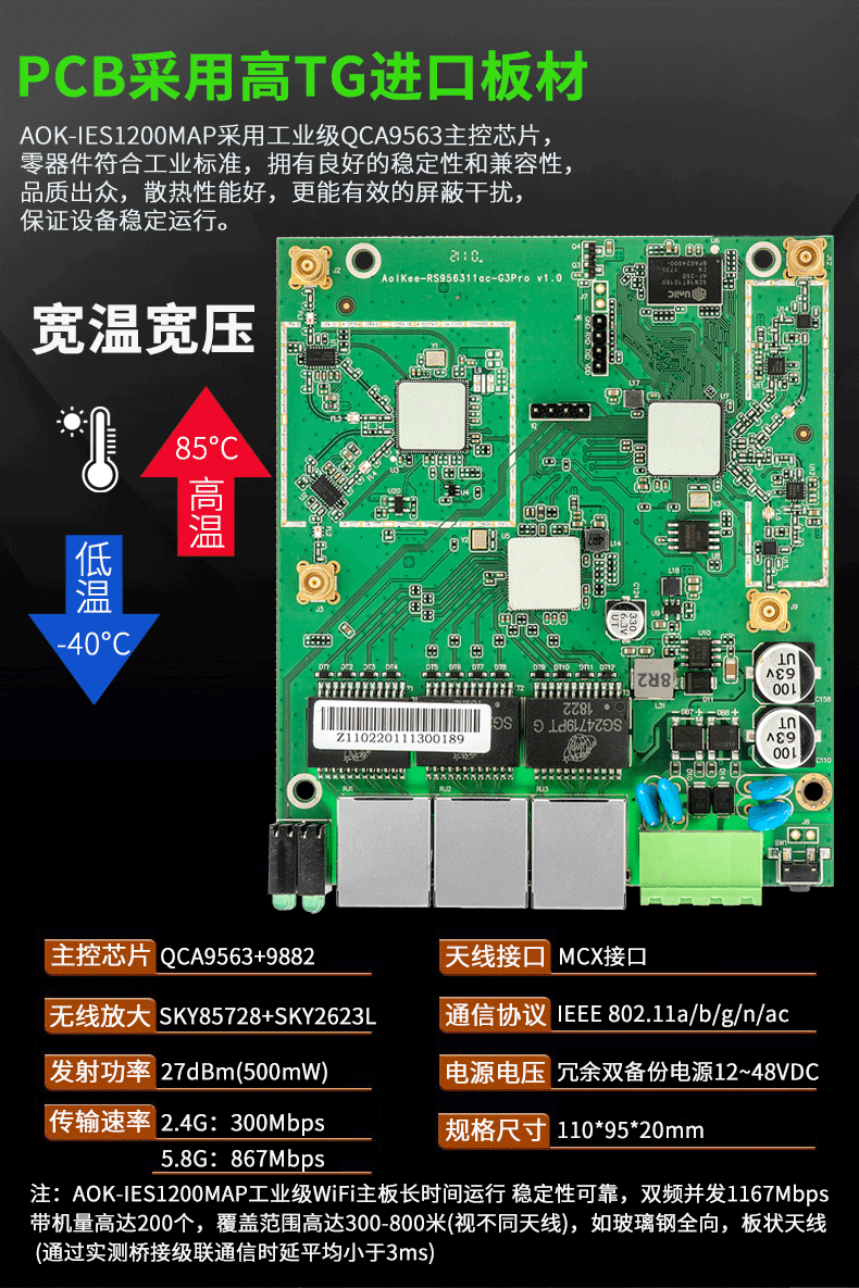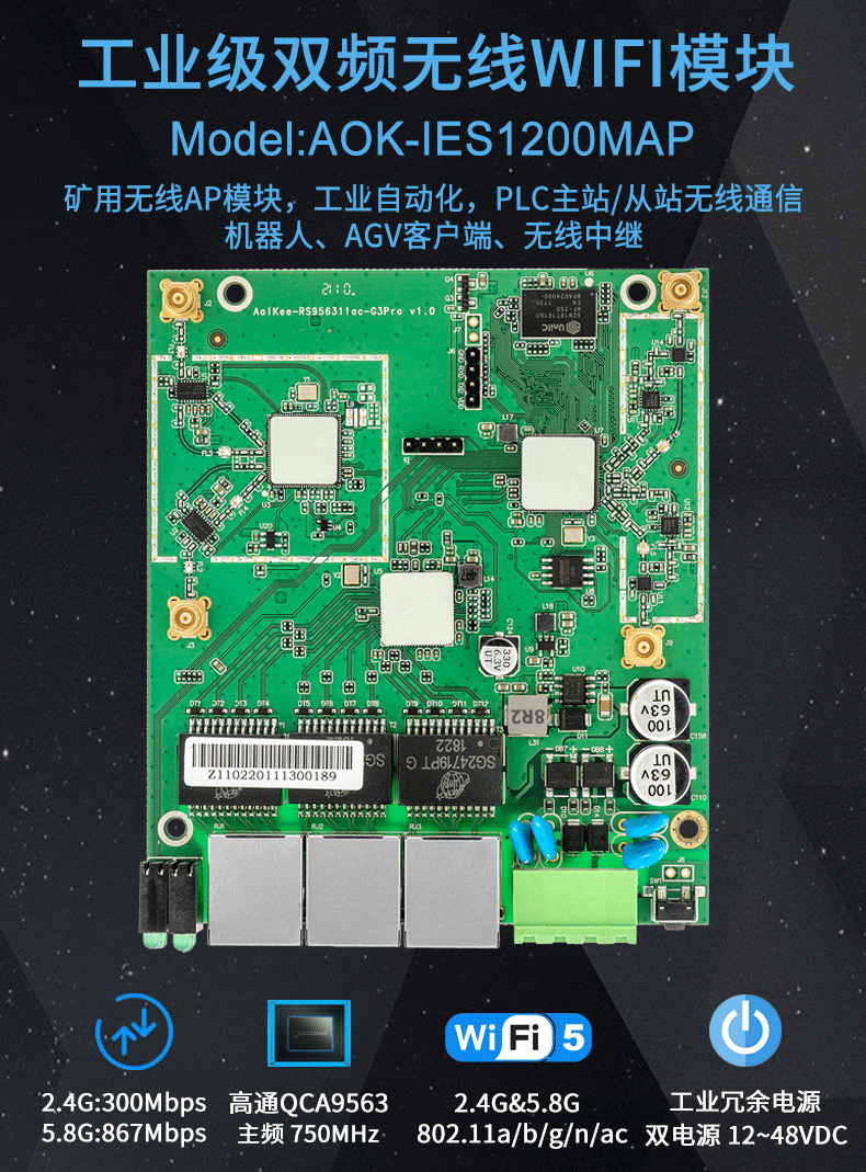 无线传输速率最高可达 1200M ;