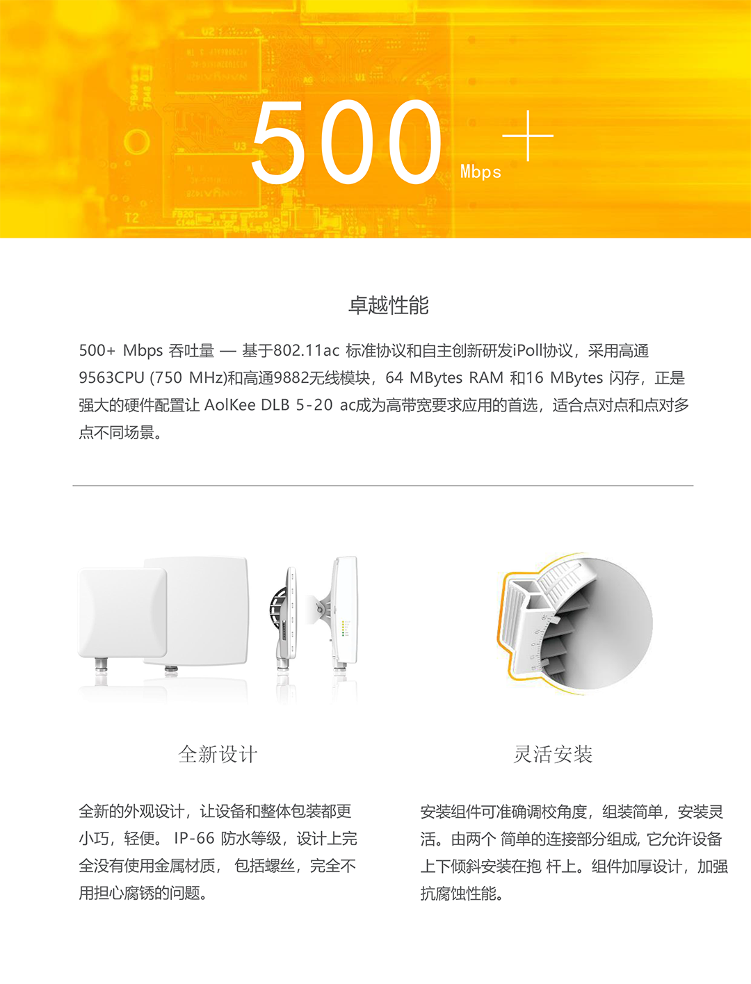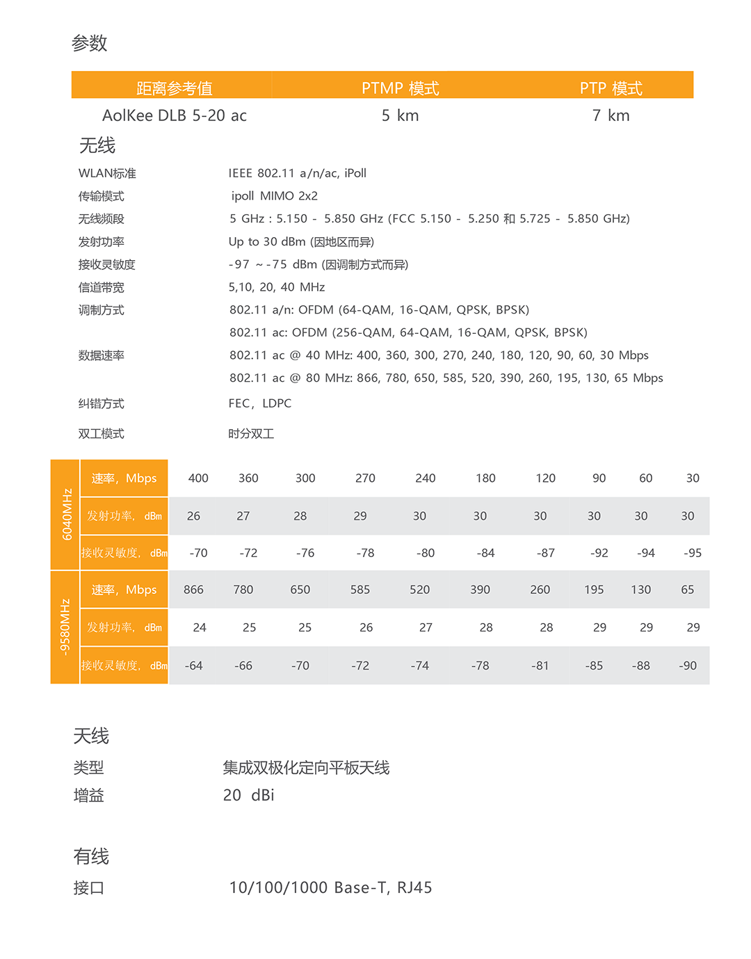 符合IEEE 802.11a/n/ 标准协议,频率5180~5785MHz支持扩频 。