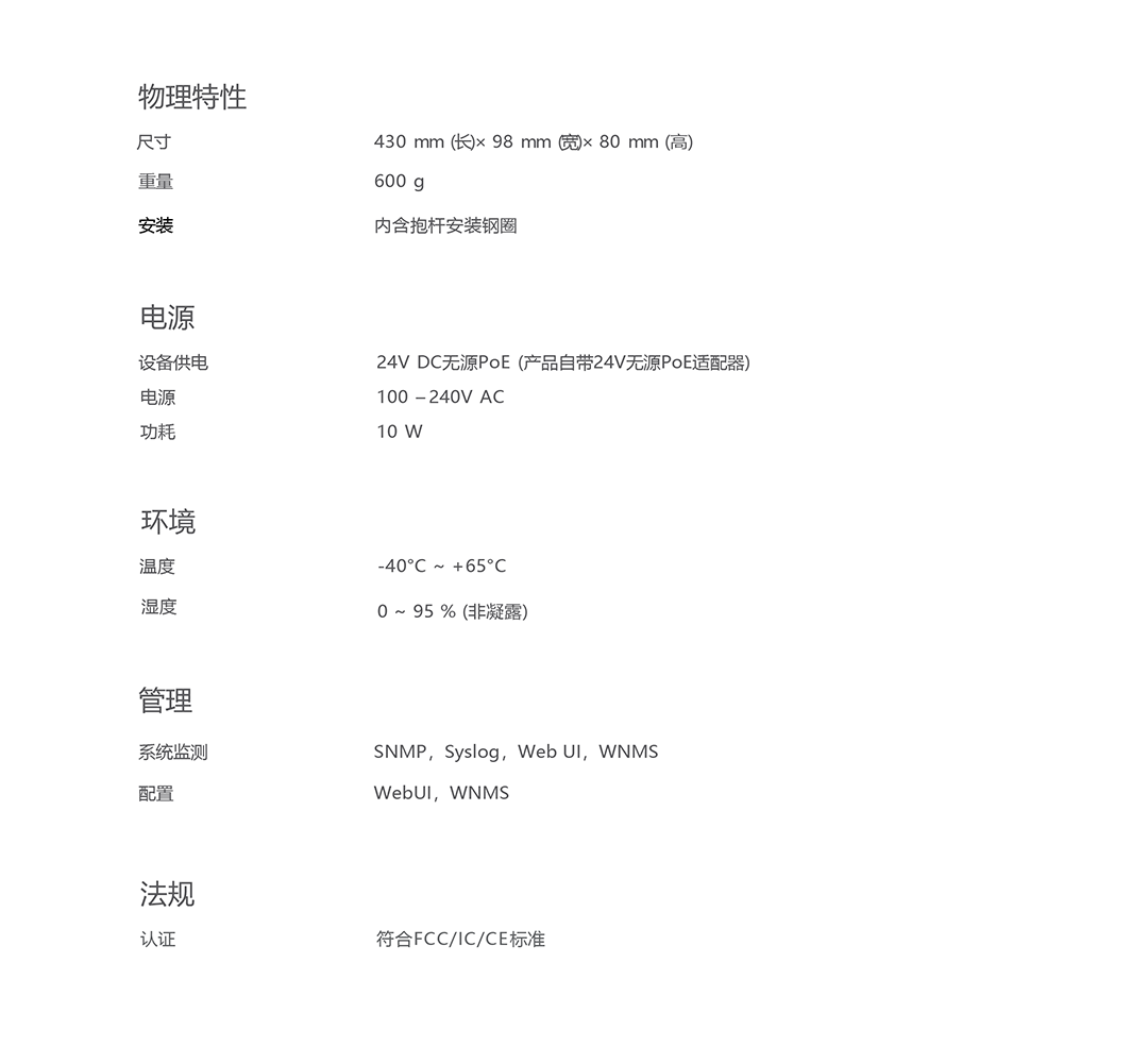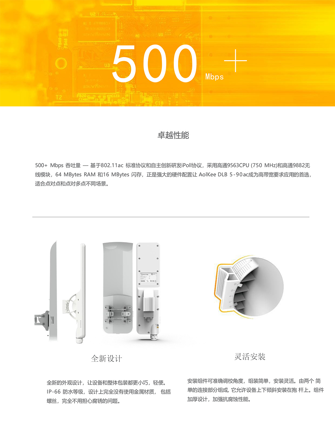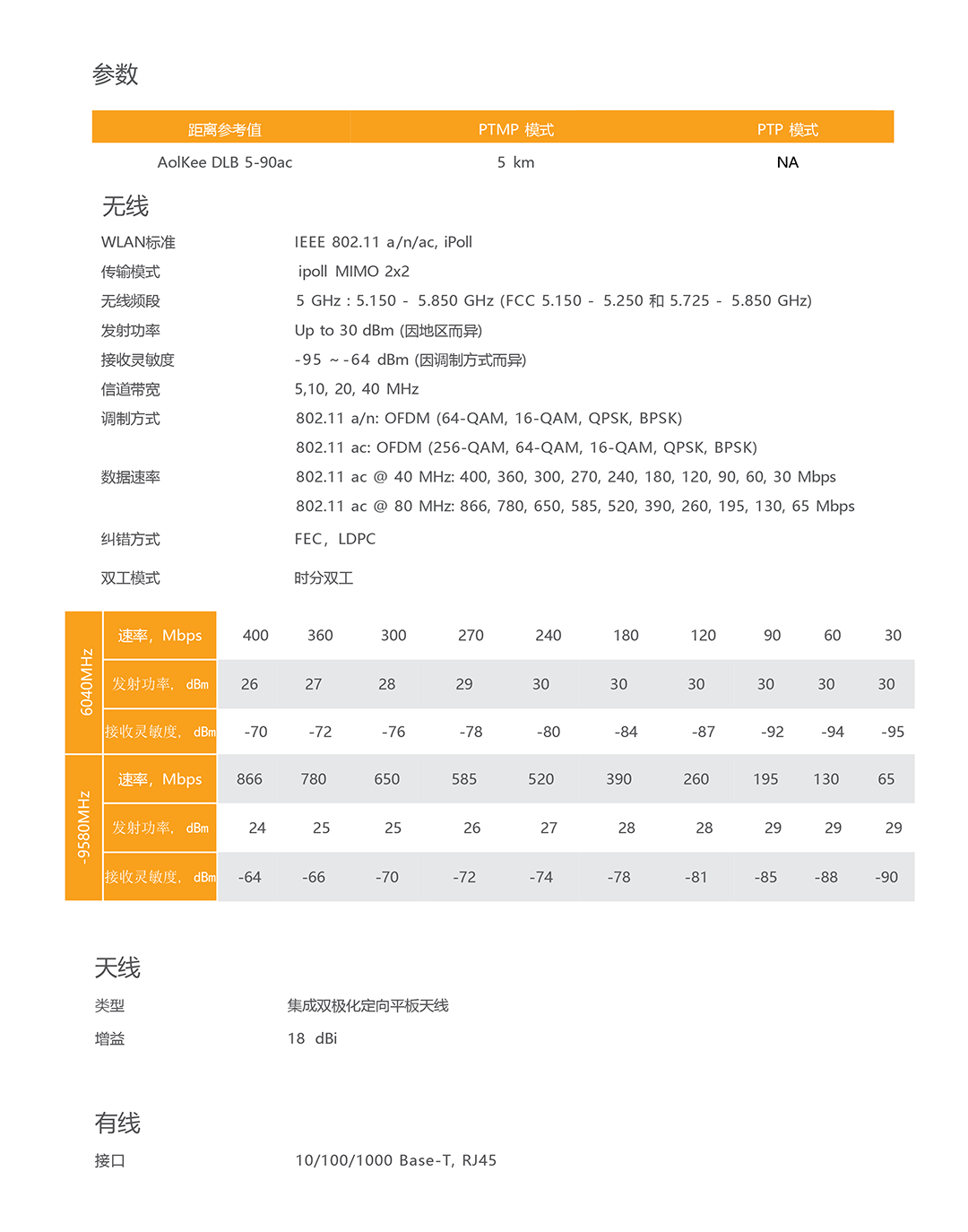 符合IEEE 802.11a/n/ac 标准协议,频率5180~5785MHz支持扩频 。